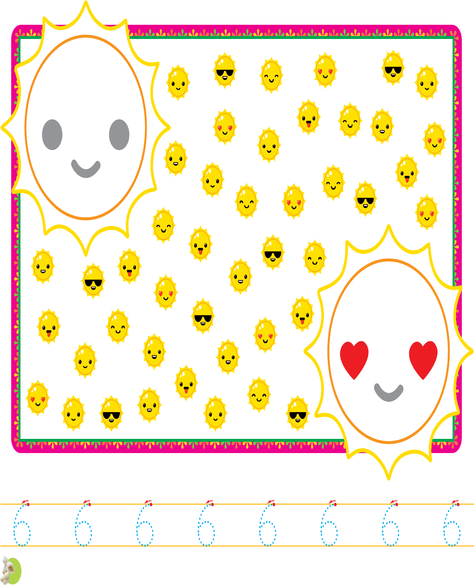 BUSCAR Y RODEAR EN EL RECUADRO 6 EMOTICONOS IGUALES A CADA MODELO. REPASAR EL TRAZO DEL NÚMERO 6.